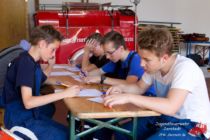 Bevor die Schlafstätten zurückgebaut und die Gerätschaften wieder gereinigt wurden sind, wurde noch die Brandmeldeanlage der Mehrzweckhalle inkl. der Laufkarten erklärt.
