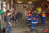 Im Anschluss fand eine große Übung gemeinsam mit dem JRK Goslar statt. Die Anwohner eines Bauernhofes haben eine starke Rauchentwicklung einer Scheune gemeldet. Beim Eintreffen der Jugendfeuerwehr Jerstedt wurde mit der Personensuche begonnen, da drei Kinder vermisst wurden sind. Das JRk übernahm auf dem Hof die weitere Betreuung der verletzten Kinder. Parallel begann die Jugendfeuerwehr das Feuer zu löschen. Nach der Übung wurde in der Feuerwache gemeinsam zu Mittag gegessen.