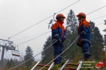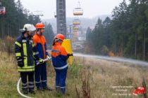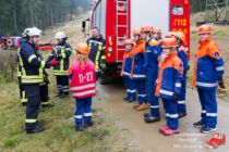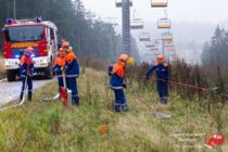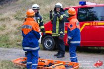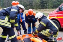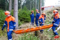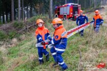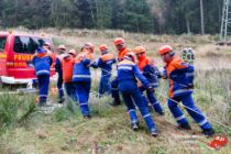 Kurz darauf fuhren die Jugendfeuerwehren Hahndorf und Jerstedt die Feuerwache Hahnenklee-Bockswiese an. Am Vormittag stand bereits die erste Übung an. Ein verunglückter Rollerfahrer musste im bergigen Gelände mithilfe der Schleifkorbtrage gerettet werden. Zusätzlich musste ein kleiner Flächenbrand abgelöscht werden, welcher aufgrund des Rollers entstanden ist. Parallel zu diesen Übungen wurden die Besonderheiten mit dem Umgang der Schleifkorbtrage erklärt.