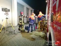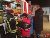 Auf dem Hof wurde zum einen mithilfe des Löschgruppenfahrzeugs (LF10-6) Licht aufgebaut. Zum anderen wurde die Ausrüstung für einen Innenangriff erklärt. Hierfür mussten die Jugendlichen zunächst alle notwendigen Materialien zusammen suchen.